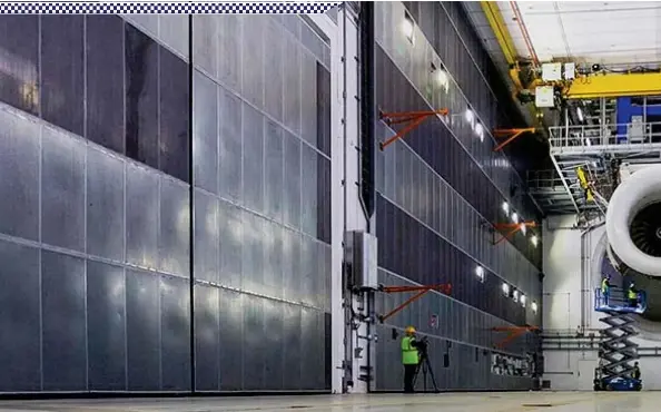 With an internal area of 7,500m2, making it larger than a premiership football pitch. The indoor area is bigger than a premiership football pitch and the walls are 1.7m thick. Testbed 80 is the largest of its kind in the world. Testbed 80 can be used to test various engines, including the trent xwb and the trent 1000. Warren east, chief executive, said: